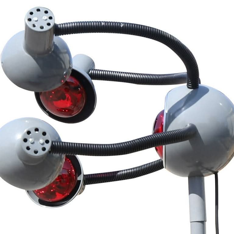 Key features: 5 adjustable infrared heads, flexible gooseneck arms, intensity/time control, stable rolling base for easy positioning.